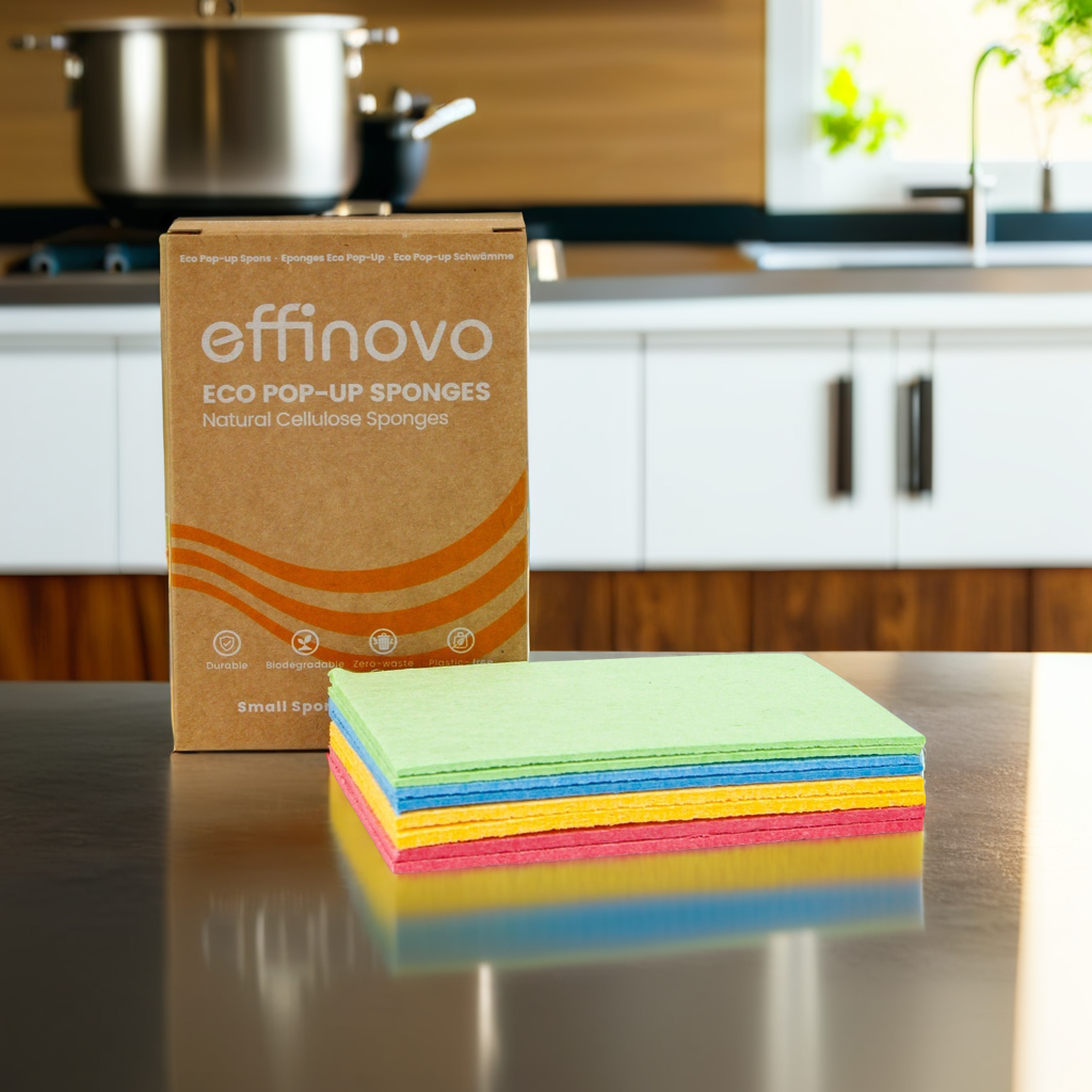 De Effinovo ECO Pop-up Spons is ultralicht en compact – ideaal voor onderweg of thuis. Voeg water toe en de spons zet uit tot een krachtige schoonmaakhulp.