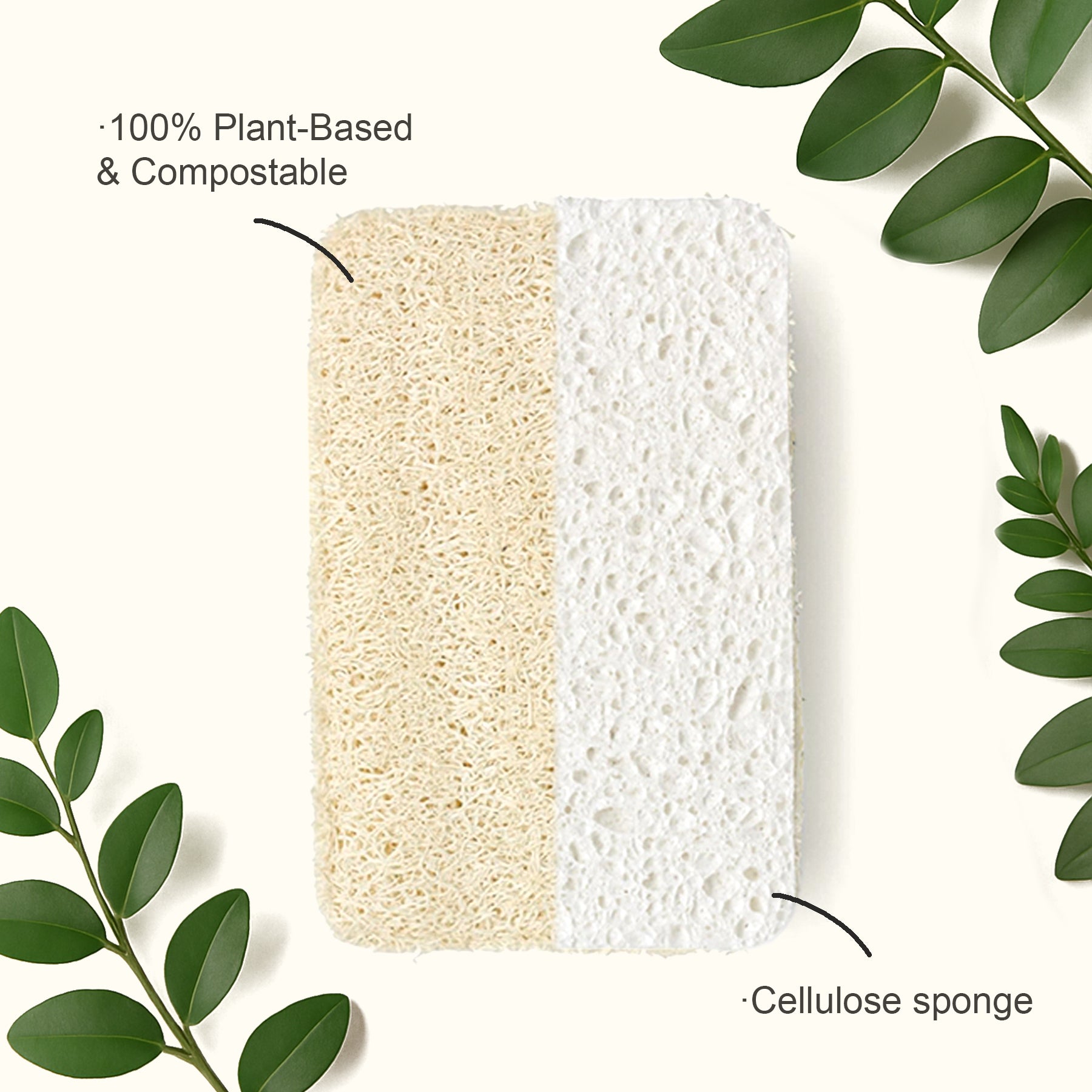✨ Dubbele structuur: zachte cellulose + natuurlijke loofah